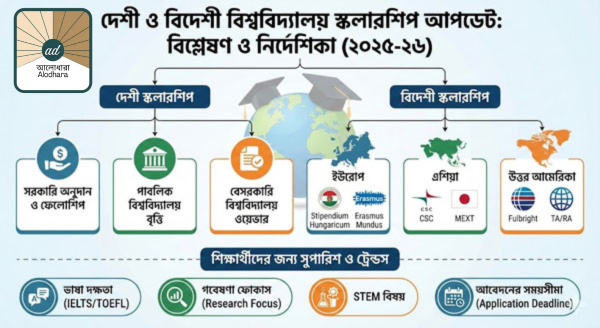 দেশী ও বিদেশী বিশ্ববিদ্যালয় স্কলারশিপ আপডেট: বিশ্লেষণ ও নির্দেশিকা (২০২৫-২৬) আলোধারা ডেস্কঃ ৫ ডিসেম্বর, ২০২৫ উচ্চশিক্ষার ক্ষেত্রে মেধা এবং গবেষণার আগ্রহ থাকলে অর্থের অভাব এখন আর প্রধান বাধা নয়। দেশীয় read more